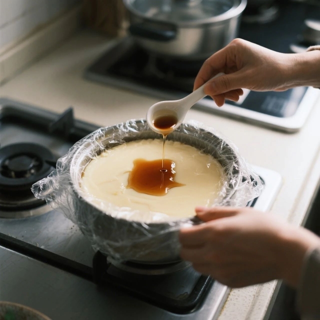 ? 蛋液加溫水?dāng)噭颍踩ジ∧?,蓋保鮮膜扎孔;