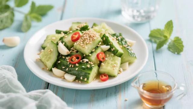 夏日里,涼拌菜是餐桌上的???,清爽開(kāi)胃。而芝麻碎的加入,能讓涼拌菜的風(fēng)味更上一層樓。涼拌黃瓜時(shí),拍碎的黃瓜加入蒜末、生抽、香醋等調(diào)料后,撒上一把芝麻碎,拌勻后,芝麻的醇香中和了黃瓜的青澀,讓口感更加豐富。