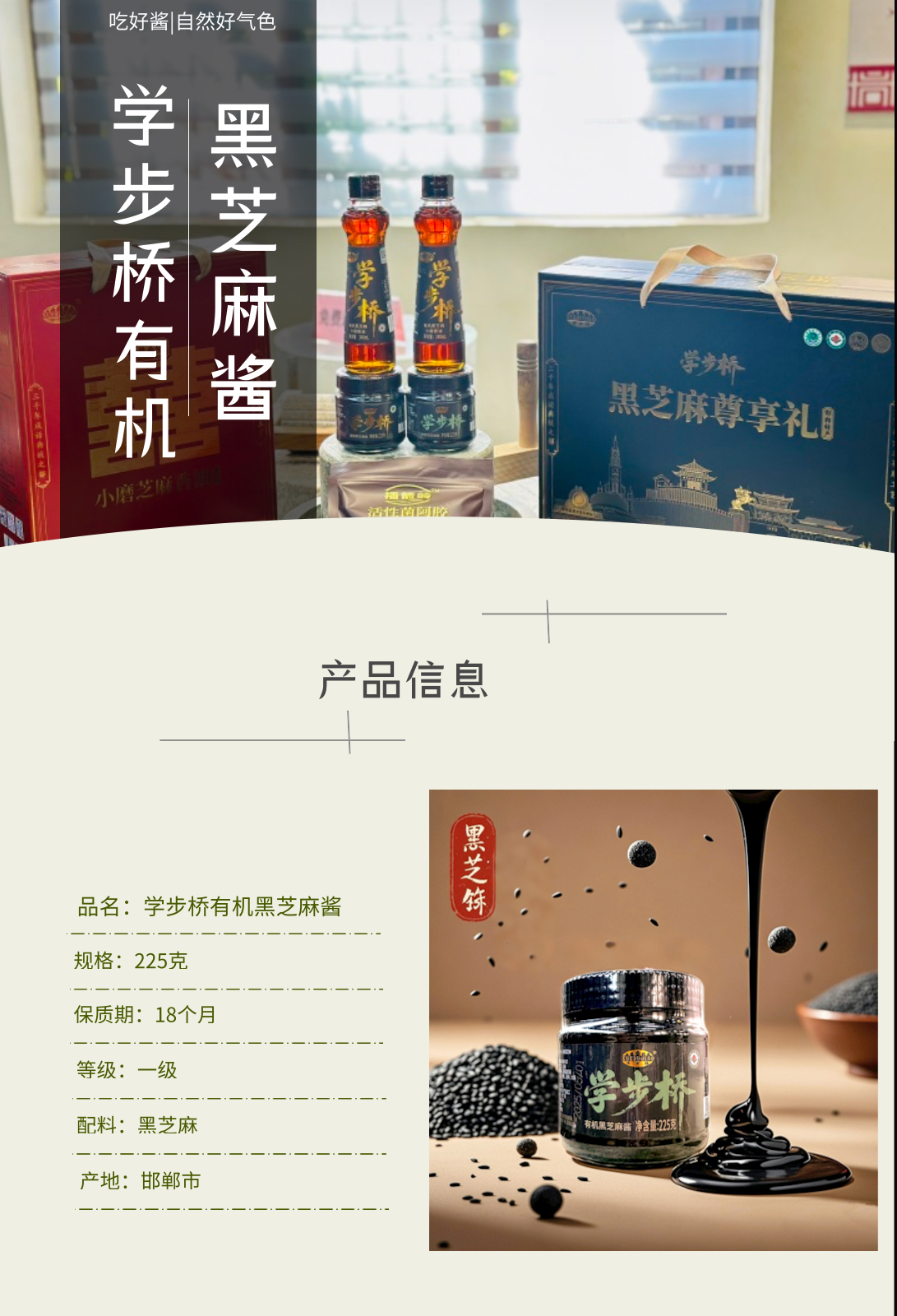學(xué)步橋有機(jī)黑芝麻醬,以純粹的有機(jī)內(nèi)核,在香氣與營(yíng)養(yǎng)間找到了完美平衡。有機(jī)種植,顆顆純凈用來(lái)磨醬的黑芝麻,來(lái)自堅(jiān)持有機(jī)耕作的田間。不撒化肥,只施草木灰與有機(jī)肥;不噴農(nóng)藥,靠人工除草和生物防治守護(hù)作物。飽滿的芝麻粒在陽(yáng)光下積累油脂與養(yǎng)分,采收后經(jīng)嚴(yán)格篩選,只留顆粒均勻、色澤烏亮的果實(shí),從源頭保證每一口的純凈。沿用傳統(tǒng)石磨工藝,低溫慢研鎖住芝麻的本真香氣,開(kāi)蓋瞬間,濃郁的芝麻香直竄鼻尖,帶著烘烤后的焦香與堅(jiān)果的醇厚,可用于涂抹面包、拌涼菜、制作甜品等。
